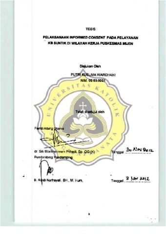 WARDHANI, PUTRI KUSUMA (2012) PELAKSANAAN INFORMED CONSENT PADA PELAYANAN KB SUNTIK DI WILAYAH KERJA PUSKESMAS MIJEN. Masters thesis, Unika Soegijapranata Semarang.