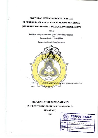 Anggraeni, Bemadeta Rosalina Dwi (2013) AKTIVITAS KEPEMIMPINAN SRATEGIS DI PERUSAHAAN KARYA REJEKI MOTOR SEMARANG (MENCRUT KONSEP HITT, IRELAND. DAN HOSKISSON). Masters thesis, UNIKA SOEGIJAPRANATA SEMARANG.