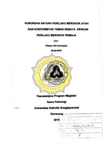 Ismiriyam, Fiktina Vitri (2010) HUBUNGAN ANTARA PERILAKU MEROKOK AYAH DAN KONFORMITAS TEMAN SEBAYA DENGAN PERILAKU MEROKOK REMAJA. Masters thesis, UNIKA SOEGIJAPRANATA SEMARANG.