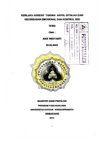 Widiyanti, Anis (2012) PERILAKU AGRESIF TARUNA AKPOL DITINJAU DARI KECERDASAN EMOSIONAL DAN KONTROL DIRI. Masters thesis, UNIKA SOEGIJAPRANATA SEMARANG.