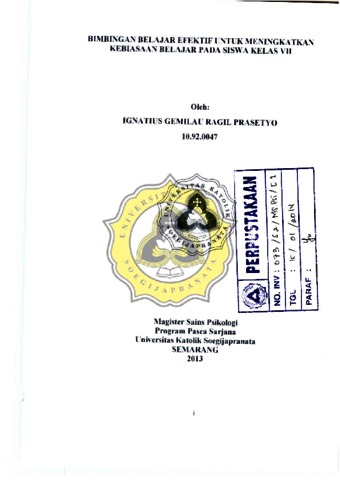 Prasetyo, Ignatius Gemilau Ragil (2013) BIMBINGAN BELAJAR EFEKTlF UNTUK MENINGKATKAN KEBIASAAN BELAJAR PADA SISWA KELAS VII. Masters thesis, UNIKA SOEGIJAPRANATA SEMARANG.