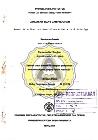 SAPUTRA, DWITYA PARAMAYUDA (2011) LTP PUSAT PELATIHAN DAN PENDIDIKAN ATLETIK LARI SALATIGA Penekanan desain : High-Tech Arsitektur. Other thesis, Unika Soegijapranata Semarang.