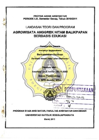 ANWAR, ANDRIALY LITYA (2011) LTP AGROWISATA ANGGREK HITAM BALIKPAPAN BERBASIS EDUKASI Penekanan desain : Arsitektur Regionalisme. Other thesis, Unika Soegijapranata Semarang.