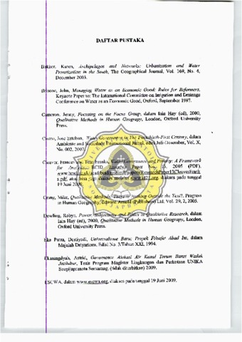 Ketika sumber daya air telah dianggap sebagai komoditas baru, maka motif pen elolaan yang dominan biasanya adalah motif ekonomi. Bisa saja, aktor pengelolanya ada ah state (badan publik), tetapi moralitas yang "menguasai" sang aktor adalah market. Ket ka pemanfaatannya adalah multi user, motif ekonomi tersebut, bukan tidak mungkin, aka 1 menyebabkan ekslusisasi terhadap kelornpok pengguna yang tidak memiliki power cuk p kuat. Oleh karenanya, memasukkan hak (right) saja tidaklah cukup, karen a me iliki hak tidak secara otomatis akan memiliki akses (access). Atau dengan kat a lain, tidak selamanya yang memiliki hak (ri[;ht) bisa memerankan peran sebagai ruler. Pada kon .eks yang demikian, persoalan keadilan air (water justice) menjadi penting untuk dib carakan.