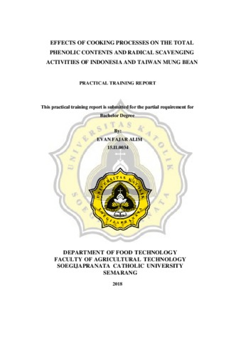 ALIM, EVAN FAJAR EFFECTS OF COOKING PROCESSES ON THE TOTAL PHENOLIC CONTENTS AND RADICAL SCAVENGING ACTIVITIES OF INDONESIA AND TAIWAN MUNG BEAN. Project Report. Unika Soegijapranata Semarang, Semarang. (Unpublished)