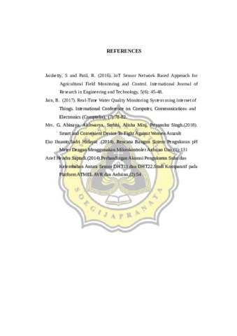 WICAKSONO, LUKAS BRYANDITO (2018) DESIGNING INTERNET OF THING (IoT) FOR MONITORING pH-VALUE, HUMIDITY,AND TEMPERATURE IN THE RIVER OF KALIGARANG. Other thesis, UNIKA SOEGIJAPRANATA SEMARANG.