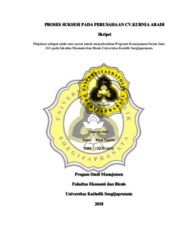 Tjandra, Risal (2018) PROSES SUKSESI PADA PERUSAHAAN CV.KURNIA ABADI. Other thesis, UNIKA SOEGIJAPRANATA SEMARANG.