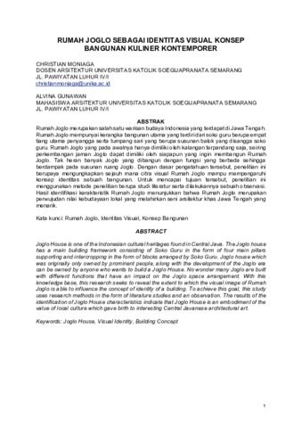 MONIAGA, CHRISTIAN (2019) RUMAH JOGLO SEBAGAI IDENTITAS VISUAL KONSEP BANGUNAN KULINER KONTEMPORER. TUTUR RUPA, 1 (2). pp. 13-22. ISSN 2088-1061