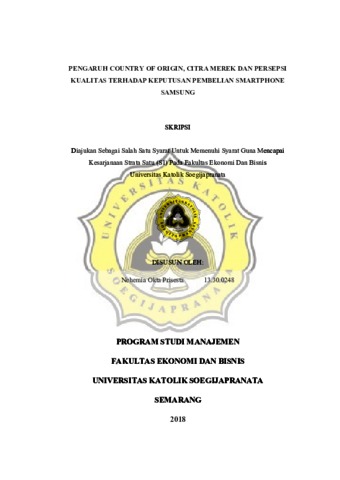 Prisesta, Nehemia Okta (2018) PENGARUH COUNTRY OF ORIGIN, CITRA MEREK DAN PERSEPSI KUALITAS TERHADAP KEPUTUSAN PEMBELIAN SMARTPHONE SAMSUNG. Other thesis, UNIKA SOEGIJAPRANATA SEMARANG.
