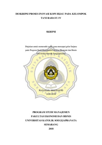 KRISTIANTO, NATANAEL (2018) DESKRIPSI PROSES INOVASI KOPI HIJAU PADA KELOMPOK TANI RAHAYU IV. Other thesis, UNIKA SOEGIJAPRANATA SEMARANG.