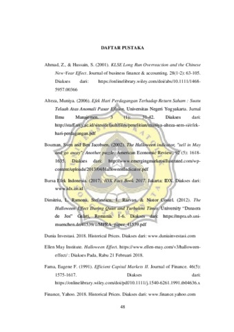 Halloween Effect merupakan salah satu anomali kalender (calendar anomalies) yang dapat terjadi di pasar modal. Telah banyak penelitian yang menunjukkan dan tidak menunjukkan terjadinya Halloween Effect pada hampir setiap pasar modal yang ada di dunia. Tujuan penelitian ini ialah melakukan pengujian Halloween Effect terhadap return saham yang terdapat pada indeks LQ- 45 di BEI periode 2009-2016. Penelitian ini menggunakan purposive sampling dimana perusahaan harus terus menerus terdaftar selama periode pengamatan. Dari 8 tahun serta 16 kali periode pengumuman, hanya 19 perusahaan yang terus menerus listing pada indeks LQ-45 selama periode pengamatan. Analisis statistik yang digunakan dalam penelitian ini adalah analisis regresi linier berganda dengan variabel dummy untuk variabel Halloween Effect. Merujuk pada Maberly dan Pierce (2004) bahwa Halloween Effect mungkin merupakan samaran dari January Effect serta crash pada bursa saham Amerika tahun 1987. Karenanya, dilakukan pemodelan regresi baru dengan menambahkan variabel January serta Outliers sebagai variabel dummy. Dalam penelitian ini menghasilkan bahwa Halloween Effect dan January Effect tidak berpengaruh terhadap abnormal return LQ-45 di Bursa Efek Indonesia periode 2009-2016. Dapat diambil kesimpulan bahwa hanya variabel Outliers yang berpengaruh terhadap abnormal return. Kata kunci: Return Saham, Return Ekspektasi, LQ-45, Halloween Effect, January Effect, Outliers, Dummy, Noise-to-Signal Ratio, Anomali Kalender, Pasar Efisien.