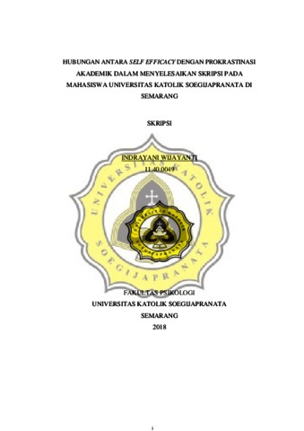 WIJAYANTI, INDRAYANI (2018) HUBUNGAN ANTARA SELF EFFICACY DENGAN PROKRASTINASI AKADEMIK DALAM MENYELESAIKAN SKRIPSI PADA MAHASISWA UNIVERSITAS KATOLIK SOEGIJAPRANATA DI SEMARANG. Other thesis, UNIKA SOEGIJAPRANATA SEMARANG.