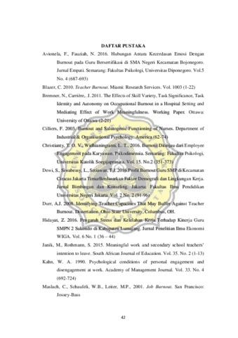 Penelitian ini bertujuan untuk mengetahui secara empiris hubungan antara kebermaknaan kerja terhadap burnout pada guru. Metode yang digunakan dalam penelitian ini adalah kuantitatif korelasional. Metode pengumpulan data penelitian ini dengan menggunakan skala burnout dan skala kebermaknaan kerja. Subjek dalam penelitian ini adalah 57 guru dari SMP dan SMA Nasima Semarang. Hasil uji hipotesis dengan menggunakan product moment data yang diperoleh menghasilkan koefisien sebesar -0,631 dengan p<0,01. Dengan demikian dapat disimpulkan bahwa hipotesis yang diajukan dalam penelitian ini diterima. Kata kunci : Burnout, Kebermaknaan kerja,