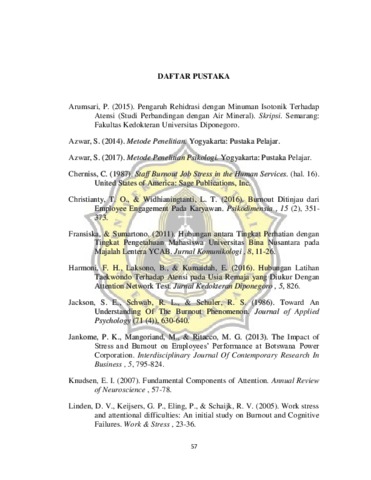 Wardhani, Alifya Ari (2018) HUBUNGAN ANTARA BURNOUT DENGAN ATENSI PADA KARYAWAN. Other thesis, UNIKA SOEGIJAPRANATA SEMARANG.