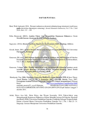 Kristina A, Elisabeth (2018) ANALISIS FAKTOR ATAS PENGAMBILAN KEPUTUSAN MAHASISWA UNTUK MEMILIH JURUSAN AKUNTANSI DI UNIKA SOEGIJAPRANATA SEMARANG. Other thesis, UNIKA SOEGIJAPRANATA SEMARANG.