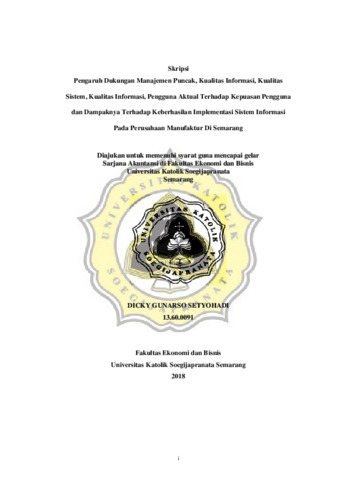 Pengaruh Dukungan Manajemen Puncak, Kualitas Informasi, Kualitas Sistem, Kualitas Informasi, Pengguna Aktual Terhadap Kepuasan Pengguna dan Dampaknya Terhadap Keberhasilan Implementasi Sistem Informasi Pada Perusahaan Manufaktur Di Semarang