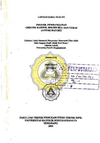 Pietarsa, Sherly (2011) PROYEK PEMBANGUNAN GEDUNG KANWIL DIRJEN BEA DAN CUKAI JATENG DAN DIY. Project Report. FAKULTAS TEKNIK, UNIKA SOEGIJAPRANATA SEMARANG, SEMARANG. (Unpublished)
