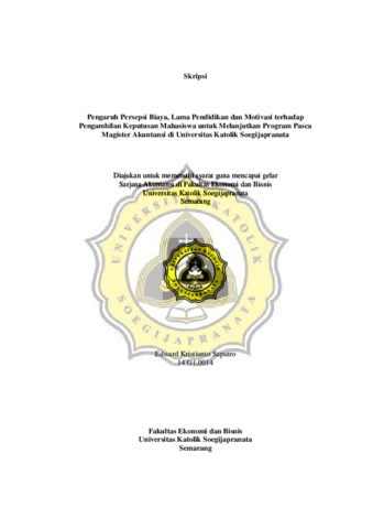 Saputro, Edward Kristianto (2018) Pengaruh Persepsi Biaya, Lama Pendidikan dan Motivasi terhadap Pengambilan Keputusan Mahasiswa untuk Melanjutkan Program Pasca Magister Akuntansi di Universitas Katolik Soegijapranata. Other thesis, UNIKA SOEGIJAPRANATA SEMARANG.