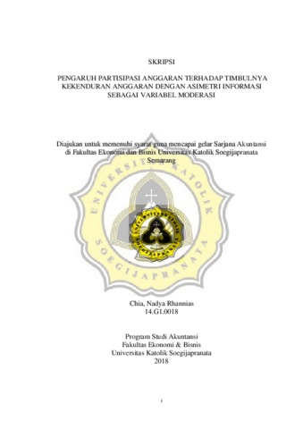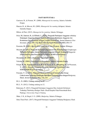 Rhannias, Chia, Nadya (2018) PENGARUH PARTISIPASI ANGGARAN TERHADAP TIMBULNYA KEKENDURAN ANGGARAN DENGAN ASIMETRI INFORMASI SEBAGAI VARIABEL MODERASI. Other thesis, UNIKA SOEGIJAPRANATA SEMARANG.