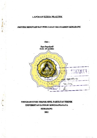 Supriyadi, Jaya (2011) PROYEK RENOVASI DAN PERLUASAN GKI STADION SEMARANG. Project Report. FAKULTAS TEKNIK, UNIKA SOEGIJAPRANATA SEMARANG, SEMARANG. (Unpublished)