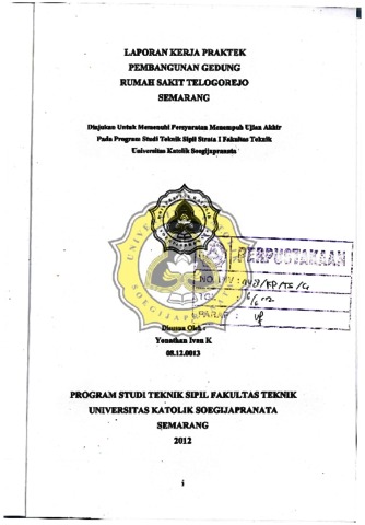 Ivan K, Yonathan (2012) PEMBANGUNAN GEDUNG RUMAH SAKIT TELOGOREJO SEMARANG. Project Report. FAKULTAS TEKNIK, UNIKA SOEGIJAPRANATA SEMARANG, SEMARANG. (Unpublished)
