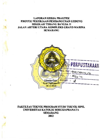 Hadisaputra, Ryan (2012) PROYEK PEKERJAAN PEMBANGUNAN GEDUNG SEKOLAH TERANG BANGSA II JALAN ATERI UTARA KOMPLEK GRAND MARINA SEMARANG. Project Report. FAKULTAS TEKNIK, UNIKA SOEGIJAPRANATA SEMARANG, SEMARANG. (Unpublished)