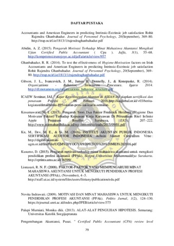 Pangestu, Yohanes Aldo (2018) PENGARUH TWO FACTOR MOTIVATION TERHADAP MINAT MAHASISWA S1 AKUNTANSI UNIVERSITAS KATOLIK SOEGIJAPRANATA UNTUK MENGIKUTI UJIAN CERTIFIED PUBLIC ACCOUNTANT (CPA). Other thesis, UNIKA SOEGIJAPRANATA SEMARANG.