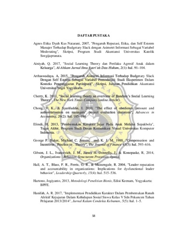 a Soewito, Kezia Verena Dwilianggara (2018) Efek Reputasi Pemimpin terhadap Budgetary Slack dengan Truthfulness sebagai Variabel Mediasi. Other thesis, UNIKA SOEGIJAPRANATA SEMARANG.