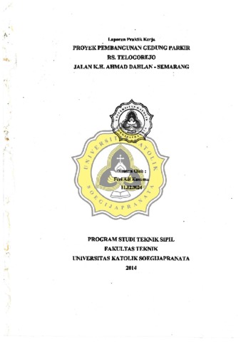 Kusuma, Feri Adi (2014) PROYEK PEMBANGUNAN GEDUNG PARKIR RS. TELOGOREJO JALAN K.H.AHMAD DAHLAN SEMARANG. Project Report. FAKULTAS TEKNIK, UNIKA SOEGIJAPRANATA SEMARANG, SEMARANG. (Unpublished)
