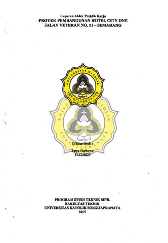 Herbowo, Setya (2015) PROYEK PEMBANGUNAN GEDUNG HOTEL CITY ONE JALAN VETERAN NO.51 SEMARANG. Project Report. FAKULTAS TEKNIK, UNIKA SOEGIJAPRANATA SEMARANG, SEMARANG. (Unpublished)