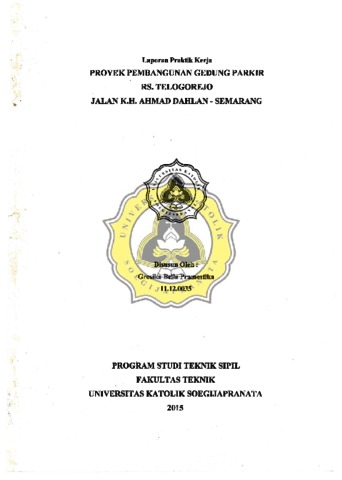 Pramestika, Gresika Bella (2015) PROYEK PEMBANGUNAN GEDUNG PARKIR RS. TELOGOREJO JALAN K.H.AHMAD DAHLAN SEMARANG. Project Report. FAKULTAS TEKNIK, UNIKA SOEGIJAPRANATA SEMARANG, SEMARANG. (Unpublished)