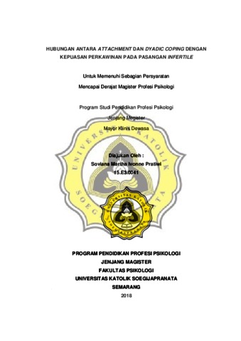 Pratiwi, Soviana Martha Ivonne (2018) HUBUNGAN ANTARA ATTACHMENT DAN DYADIC COPING DENGAN KEPUASAN PERKAWINAN PADA PASANGAN INFERTILE. Other thesis, UNIKA SOEGIJAPRANATA SEMARANG.