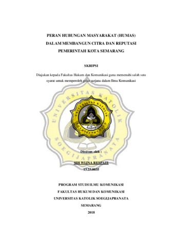 RESPATI, SIH WIJNA (2018) PERAN HUBUNGAN MASYARAKAT (HUMAS) DALAM MEMBANGUN CITRA DAN REPUTASI PEMERINTAH KOTA SEMARANG. Other thesis, UNIKA SOEGIJAPRANATA SEMARANG.