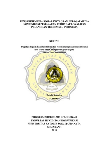 Veronica, Eunike (2018) PENGARUH MEDIA SOSIAL INSTAGRAM SEBAGAI MEDIA KOMUNIKASI PEMASARAN TERHADAP LOYALITAS PELANGGAN TELKOMSEL INDONESIA. Other thesis, UNIKA SOEGIJAPRANATA SEMARANG.