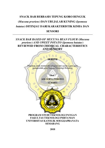 WIBOWO, ADE SURYA (2018) SNACK BAR BASED OF MUCUNA BEAN FLOUR (Mucuna pruriens) AND SWEET POTATO (Ipomoea batatas) REVIEWED FROM CHEMICAL CHARACTERISTICS AND SENSORY. Other thesis, UNIKA SOEGIJAPRANATA SEMARANG.
