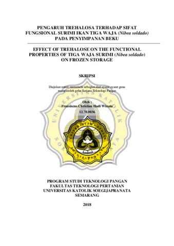 Winata, Fransiscus Christian Hadi (2018) EFFECT OF TREHALOSE ON THE FUNCTIONAL PROPERTIES OF TIGA WAJA SURIMI (Nibea soldado) ON FROZEN STORAGE. Other thesis, UNIKA SOEGIJAPRANATA SEMARANG.