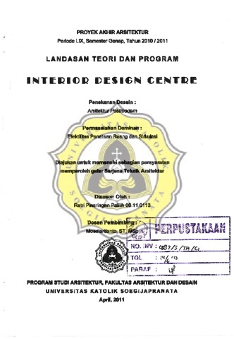 Palilih, Ratri Pinaringan (2011) LTP INTERIOR DESIGN CENTRE Penekanan desain : Arsitektur Postmodern. Other thesis, Unika Soegijapranata Semarang.
