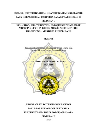 NURULCHUSNA, AZAHRA ARUM (2018) ISOLATION, IDENTIFICATION AND QUANTIFICATION OF MICROPLASTICS IN GREEN MUSSELS FROM THREE TRADITIONAL MARKETS IN SEMARANG. Other thesis, UNIKA SOEGIJAPRANATA SEMARANG.