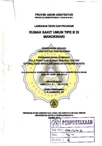 ARBITTA A. S, - (2011) LTP RUMAH SAKIT UMUM TIPE B DI MANOKWARI Penekanan desain : arsitektur postmodern. Other thesis, Unika Soegijapranata Semarang.