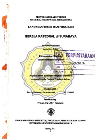 PARAMABHAKTI, DONNY SETIAWAN (2011) LTP GEREJA KATEDRAL DI SURABAYA Penekanan desain : Arsitektur Gothic. Other thesis, Unika Soegijapranata Semarang.