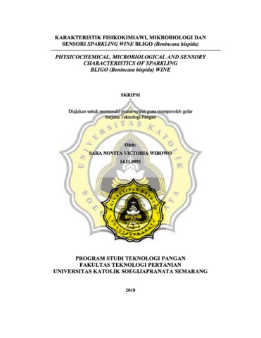 WIBOWO, SARA NOVITA VICTORIA (2018) PHYSICOCHEMICAL, MICROBIOLOGICAL AND SENSORY CHARACTERISTICS OF SPARKLING BLIGO (Benincasa hispida) wine. Other thesis, UNIKA SOEGIJAPRANATA SEMARANG.