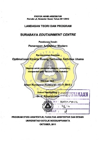 KUSWARDI, ALBERT KURNIAWAN (2011) LTP SURABAYA EDUTAINMENT CENTRE Penekanan desain : Penerapan Arsitektur Modern. Other thesis, Unika Soegijapranata Semarang.