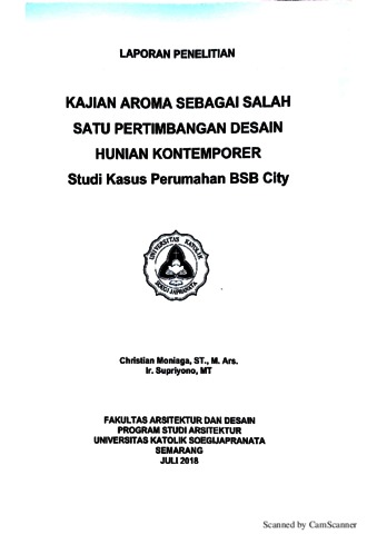 MONIAGA, CHRISTIAN and supriyono, Supriyono (2018) KAJIAN AROMA SEBAGAI SALAH SATU PERTIMBANGAN DESAIN HUNIAN KONTEMPORER Studi Kasus Perumahan BSB City. Internal Research. (Unpublished)