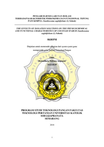 Angraeni, Bernadheta Meliana (2018) THE EFFECTS OF ISOLATION SOLUTIONS ON THE PHYSICOCHEMICAL AND FUNCTIONAL CHARACTERISTICS OF COCOYAM STARCH (Xanthosoma sagittifolium (L) Schott). Other thesis, UNIKA SOEGIJAPRANATA SEMARANG.