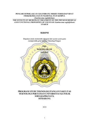 IRANA, MARTINA (2018) THE EFFECTS OF MICROWAVE TREATMENT ON THE PHYSICOCHEMICAL AND FUNCTIONAL PROPERTIES OF COCOYAM (Xanthosoma sagittifolium) STARCH. Other thesis, UNIKA SOEGIJAPRANATA SEMARANG.