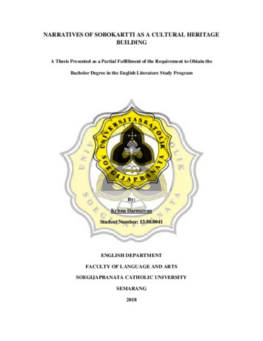 Darmawan, Krisna (2018) NARRATIVES OF SOBOKARTTI AS A CULTURAL HERITAGE BUILDING. Other thesis, UNIKA SOEGIJAPRANATA SEMARANG.
