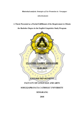 ADMASARI, CLAUDIA GABBY (2018) Rhetorical analysis: Strategies of Car Promotion in Newspaper Advertisements. Other thesis, UNIKA SOEGIJAPRANATA SEMARANG.