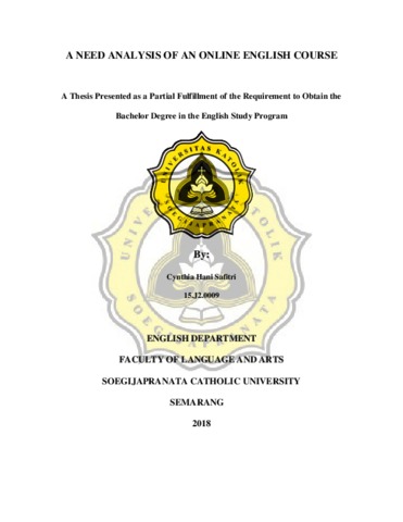 Safitri, Cynthia Hani (2018) A NEED ANALYSIS OF AN ONLINE ENGLISH COURSE. Other thesis, UNIKA SOEGIJAPRANATA SEMARANG.