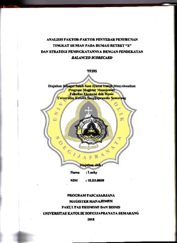 LUCKY, LUCKY (2018) ANALISA FAKTOR-FAKTOR PENYEBAB PENURUNAN TINGKAT HUNIAN PADA RUMAH RETRET "X" DAN STRATEGI PENINGKATANNYA DENGAN PENDEKATAN BALANCED SCORECARD. Other thesis, UNIKA SOEGIJAPRANATA SEMARANG.