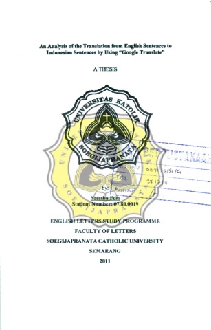 FEM, SRESTHA (2011) AN ANALYSYS OF THE TRANSLATION FROM ENGLISH SENTENCES TO INDONESIAN SENTENCES BY USING "GOOGLE TRANSLATE". Other thesis, Unika Soegijapranata Semarang.